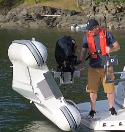 Our Manual Davit System in operation as it raises and lowers a dinghy by the simple turn of a crank. The most innovative and stylish